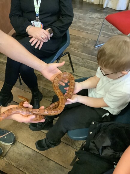 Today, Year 4 had the fantastic chance to partake in a Zoolab workshop at Devizes Museum. We learnt lots of facts and were able to hold and touch African land snails, cockroaches, snakes and a tree frog!